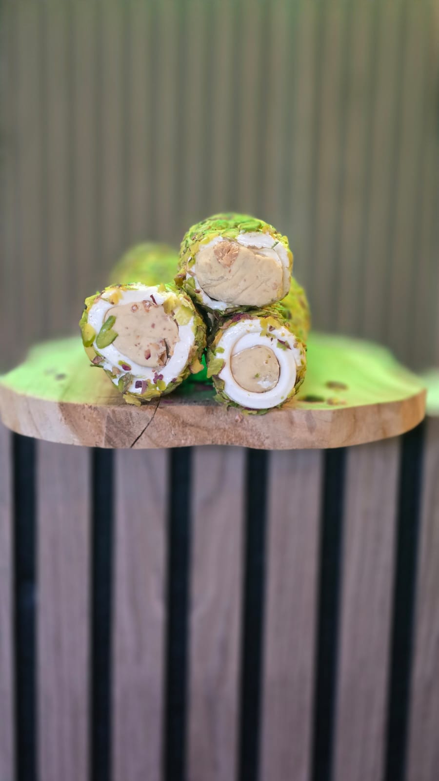 Turks Fruit met een vulling van pistache en omring met Pistachestukken